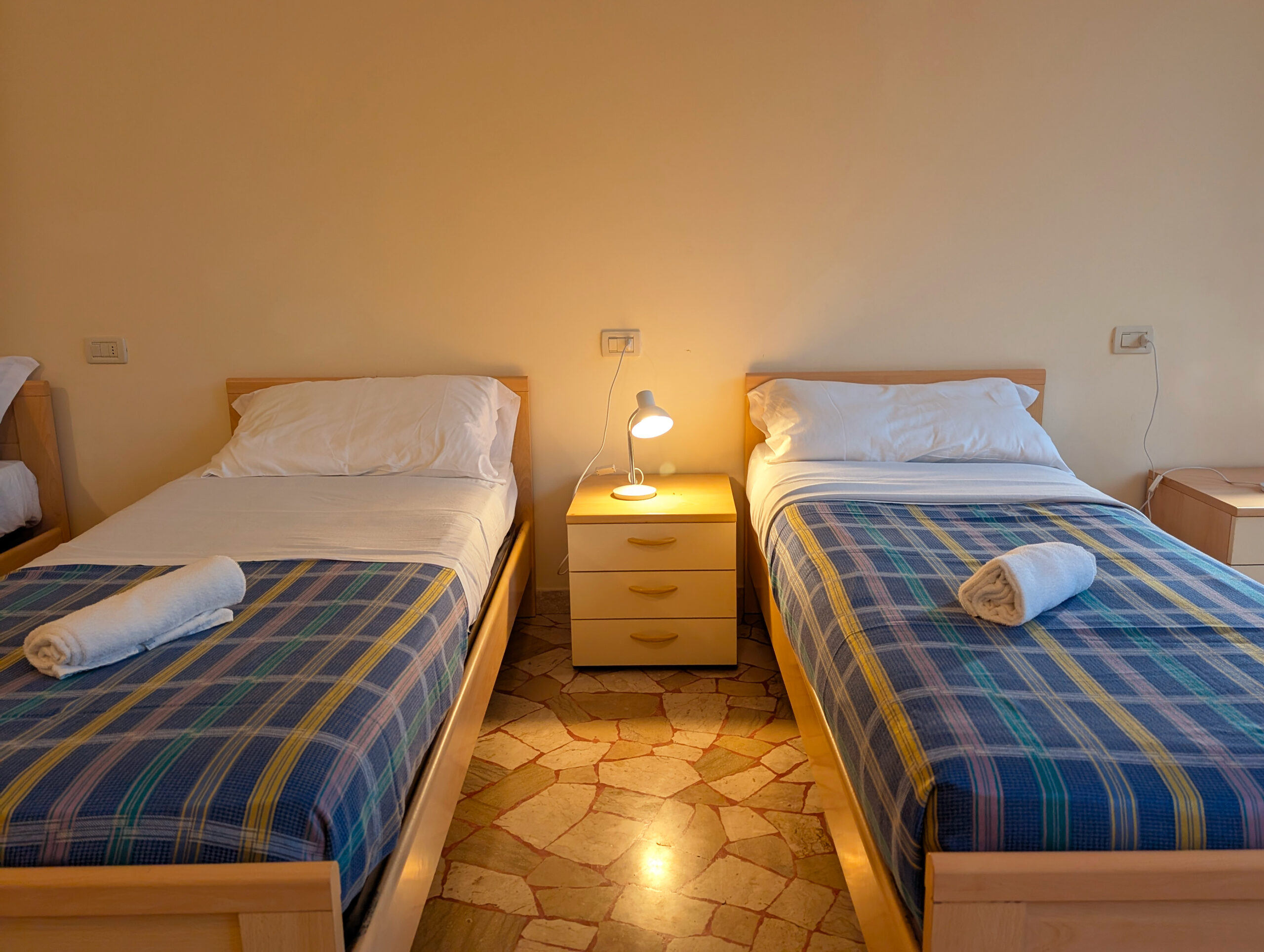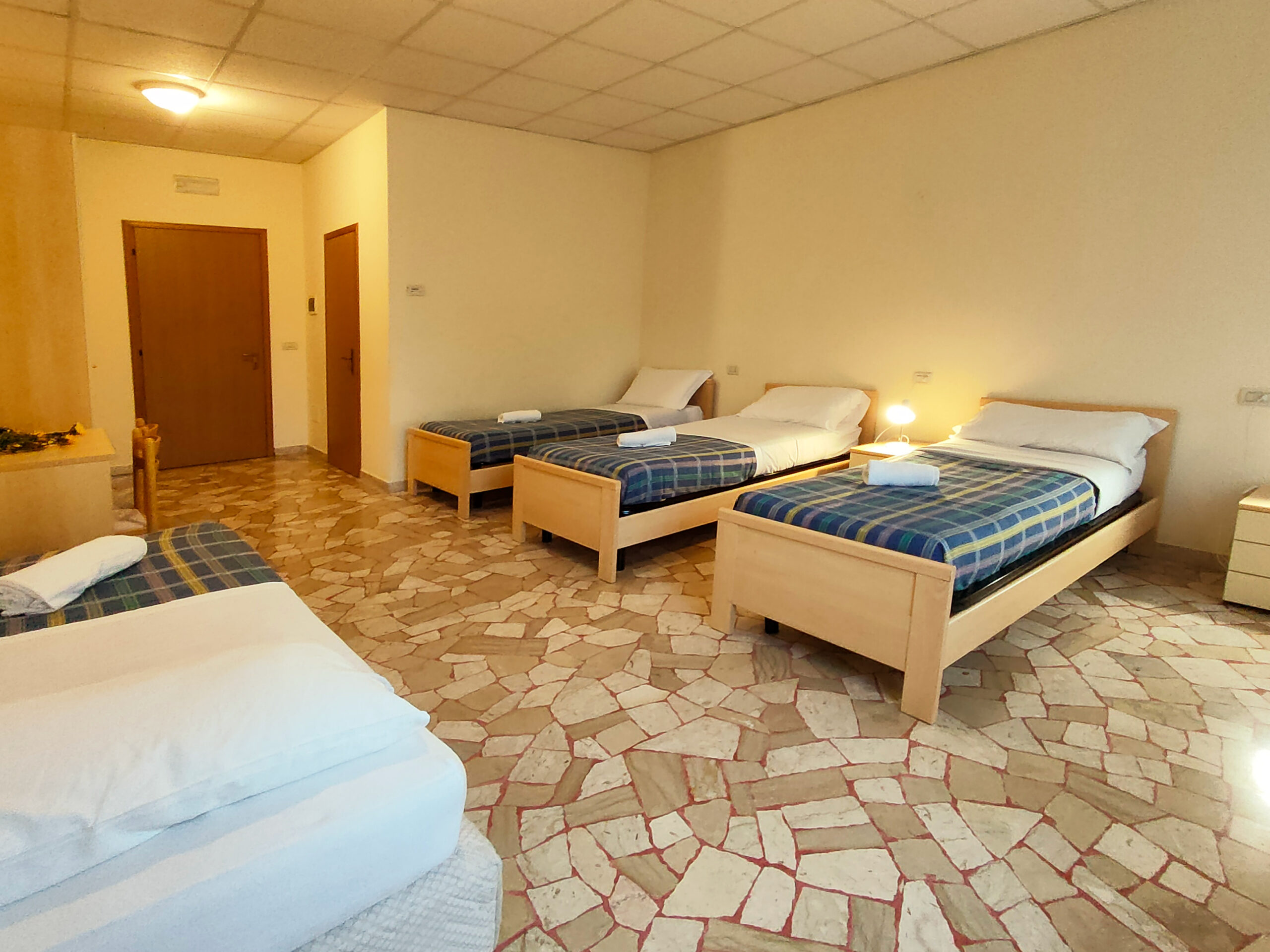 Camere standard Confortevoli e luminose, ideali per soggiorni di individuali, coppie o famiglie. Ogni camera è dotata di bagno privato, arredi essenziali e funzionali e vista sul